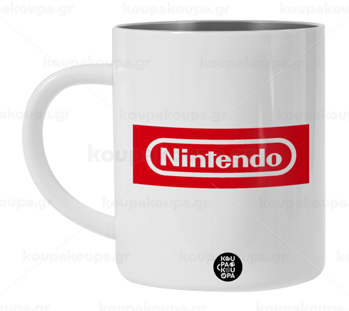 Nintendo, Λευκή Ανοξείδωτη Μεταλλική Κούπα 450ml - Διπλού Τοιχώματος