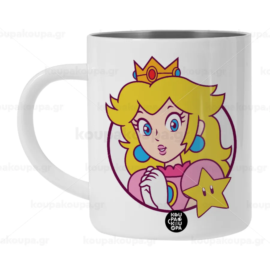 Princess Peach, Λευκή Ανοξείδωτη Μεταλλική Κούπα 450ml - Διπλού Τοιχώματος