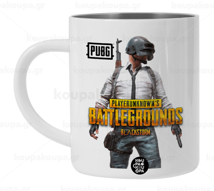 PUBG battleground royale, Λευκή Ανοξείδωτη Μεταλλική Κούπα 450ml - Διπλού Τοιχώματος