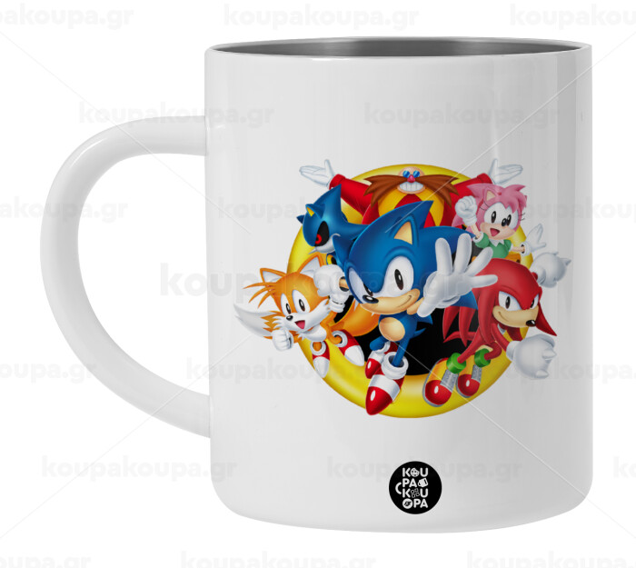 Sonic and friends, Λευκή Ανοξείδωτη Μεταλλική Κούπα 450ml - Διπλού Τοιχώματος