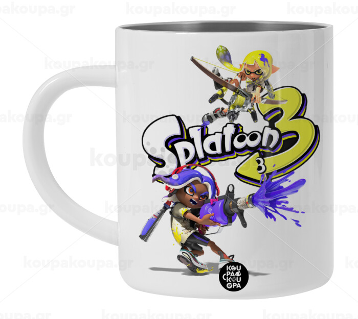 Splatoon 3, Λευκή Ανοξείδωτη Μεταλλική Κούπα 450ml - Διπλού Τοιχώματος