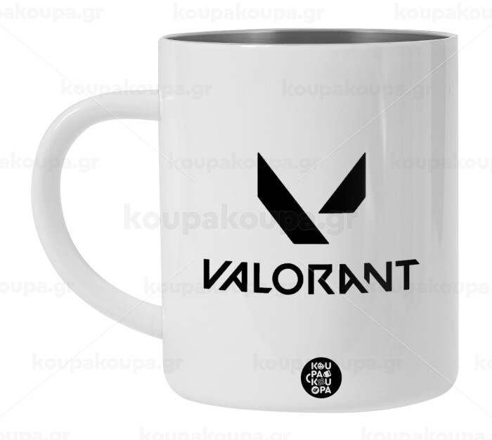 Valorant, Λευκή Ανοξείδωτη Μεταλλική Κούπα 450ml - Διπλού Τοιχώματος
