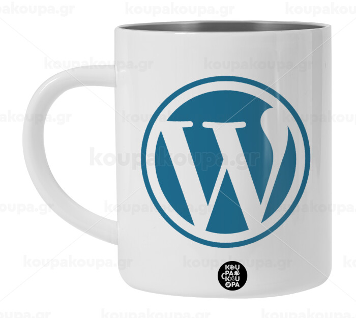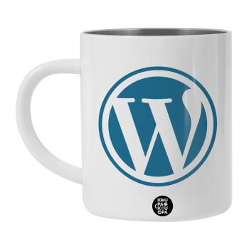 Wordpress, Λευκή Ανοξείδωτη Μεταλλική Κούπα 450ml - Διπλού Τοιχώματος