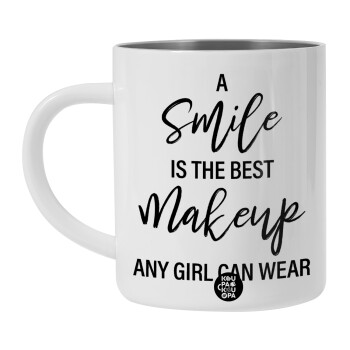 A slime is the best makeup any girl can wear, Λευκή Ανοξείδωτη Μεταλλική Κούπα 450ml - Διπλού Τοιχώματος