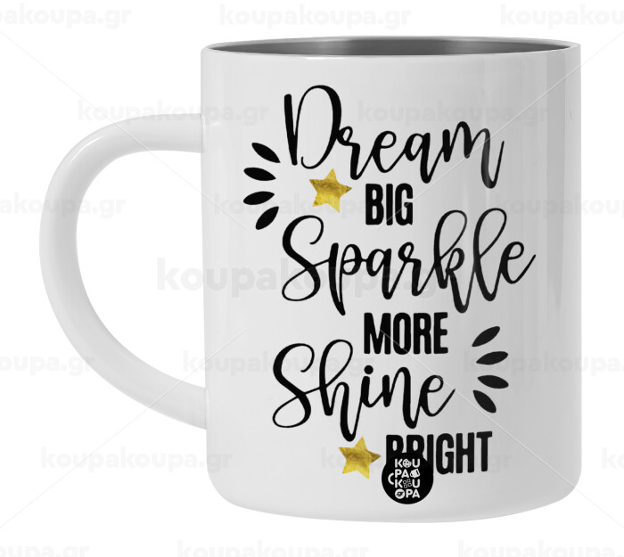 Dream big, Sparkle more, Shine bright, Λευκή Ανοξείδωτη Μεταλλική Κούπα 450ml - Διπλού Τοιχώματος