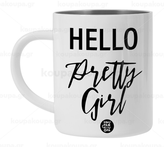 Hello pretty girl, Λευκή Ανοξείδωτη Μεταλλική Κούπα 450ml - Διπλού Τοιχώματος