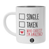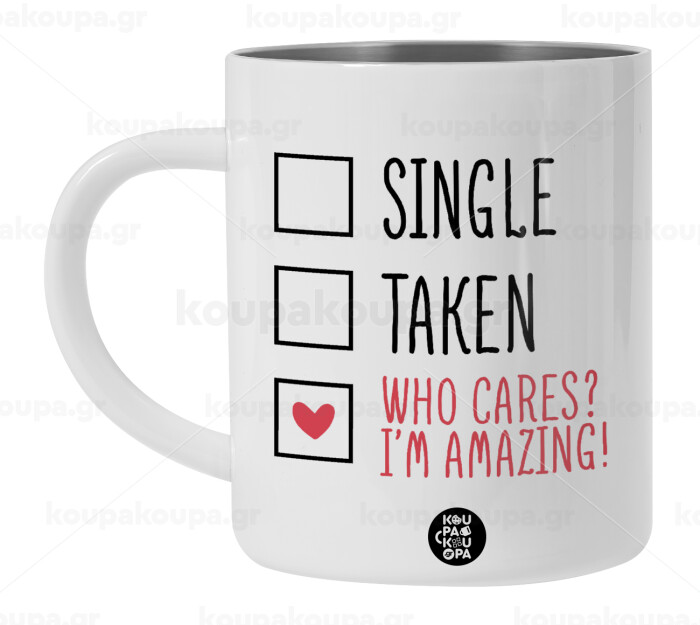 Single, Taken, Who cares i'm amazing, Λευκή Ανοξείδωτη Μεταλλική Κούπα 450ml - Διπλού Τοιχώματος
