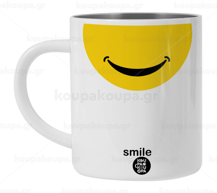 Smile Mug, Λευκή Ανοξείδωτη Μεταλλική Κούπα 450ml - Διπλού Τοιχώματος