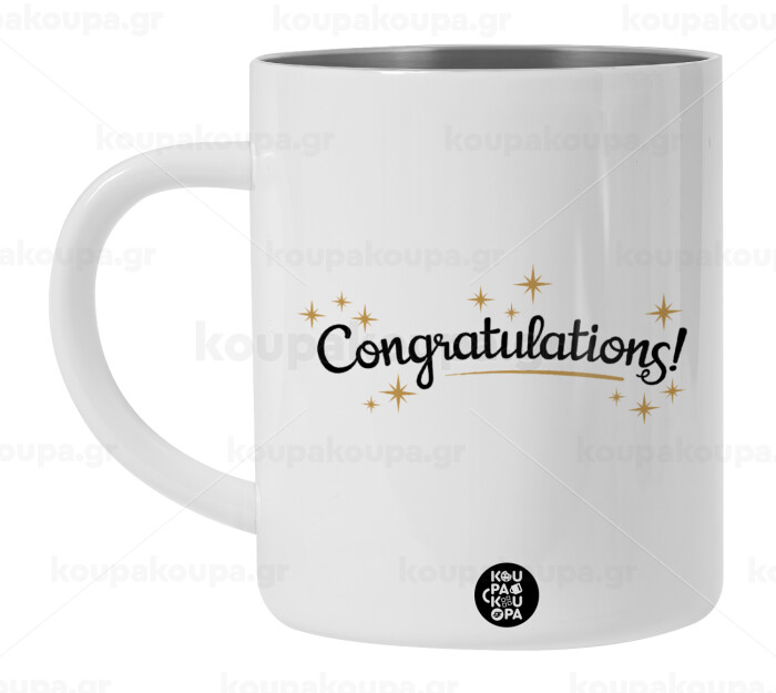 Congratulations, Λευκή Ανοξείδωτη Μεταλλική Κούπα 450ml - Διπλού Τοιχώματος