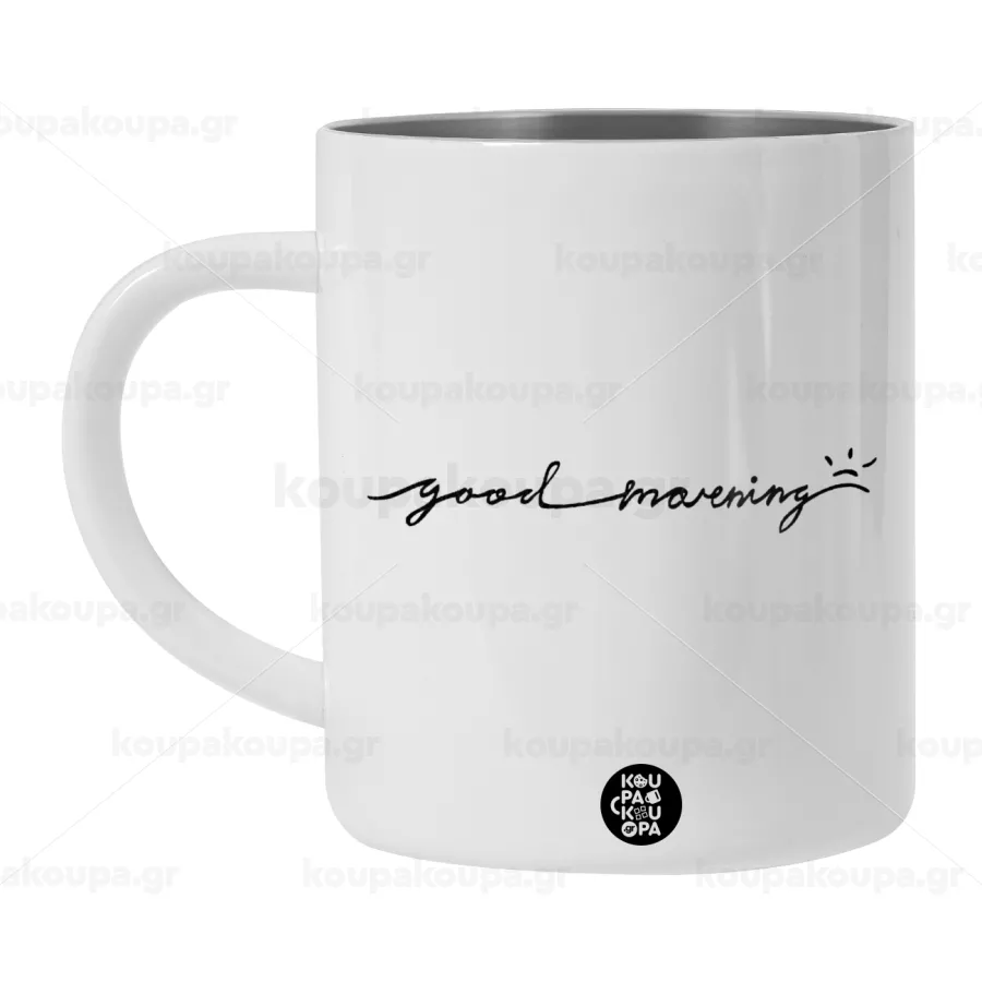 Good morning, Λευκή Ανοξείδωτη Μεταλλική Κούπα 450ml - Διπλού Τοιχώματος