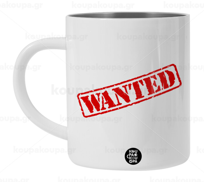 Wanted, Λευκή Ανοξείδωτη Μεταλλική Κούπα 450ml - Διπλού Τοιχώματος