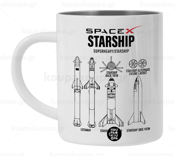 Space X, Λευκή Ανοξείδωτη Μεταλλική Κούπα 450ml - Διπλού Τοιχώματος