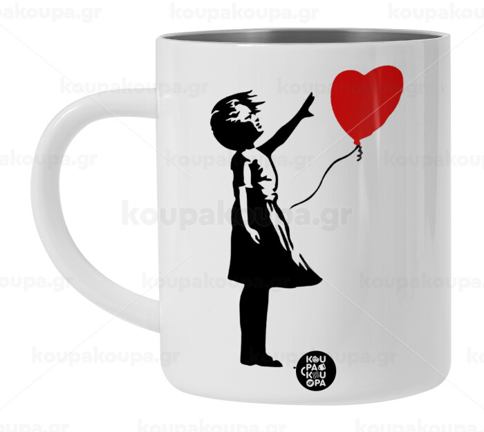 Banksy (Hope), Λευκή Ανοξείδωτη Μεταλλική Κούπα 450ml - Διπλού Τοιχώματος