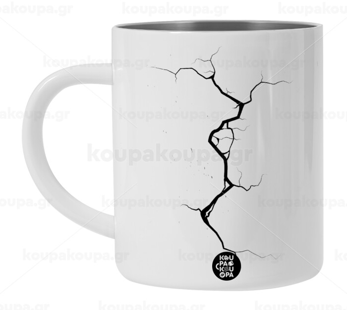 Cracked, Λευκή Ανοξείδωτη Μεταλλική Κούπα 450ml - Διπλού Τοιχώματος