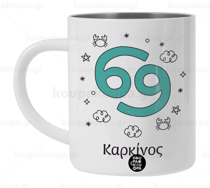 Ζώδια Καρκίνος, Λευκή Ανοξείδωτη Μεταλλική Κούπα 450ml - Διπλού Τοιχώματος