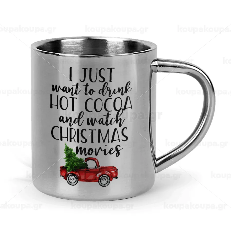 I just want to drink hot cocoa and watch christmas movies pickup car, Κούπα Ανοξείδωτη διπλού τοιχώματος 300ml