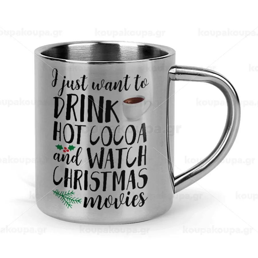 I just want to drink hot cocoa and watch christmas movies, Κούπα Ανοξείδωτη διπλού τοιχώματος 300ml
