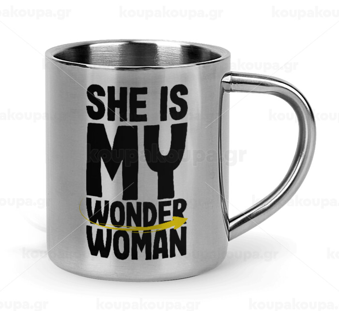 She is my wonder woman, Κούπα Ανοξείδωτη διπλού τοιχώματος 300ml