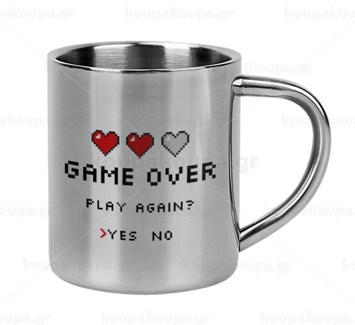 GAME OVER, Play again? YES - NO, Κούπα Ανοξείδωτη διπλού τοιχώματος 300ml