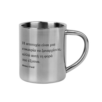 Κούπα ανοξείδωτη (300ml) με διπλό τοίχωμα εξαιρετικής ποιότητας. Κατάλληλη για ζεστά και κρύα ροφήματα. Το διπλό τοίχωμα κρατάει την θερμοκρασία του ροφήματος εσωτερικά και επιτρέπει να αγκαλιάζετε το ρόφημα σας.
