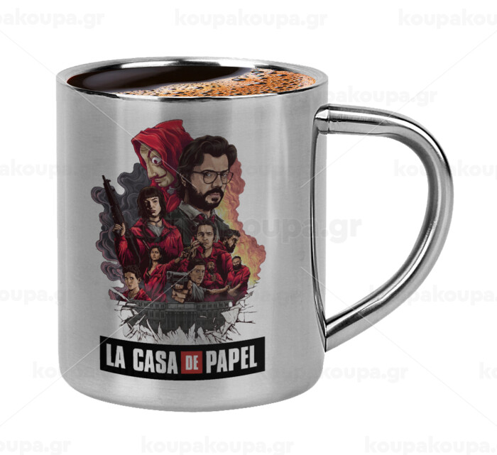 La casa de papel drawing cover, Κουπάκι μεταλλικό διπλού τοιχώματος για espresso (220ml)