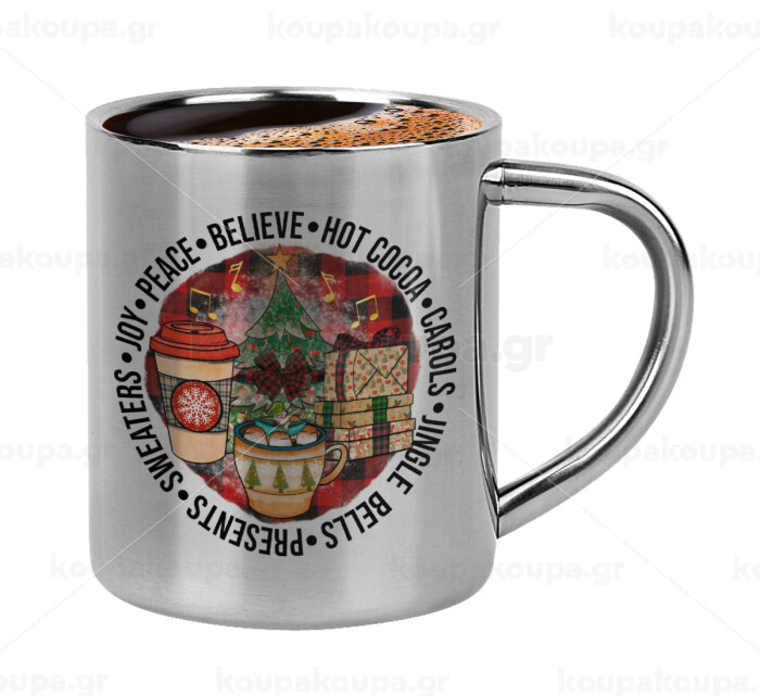 Joy, Peace, Believe, Hot Cocoa, Carols, Κουπάκι μεταλλικό διπλού τοιχώματος για espresso (220ml)