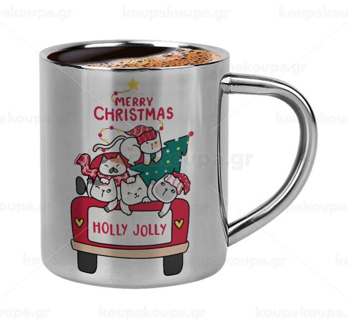 Merry Christmas cats in car, Κουπάκι μεταλλικό διπλού τοιχώματος για espresso (220ml)