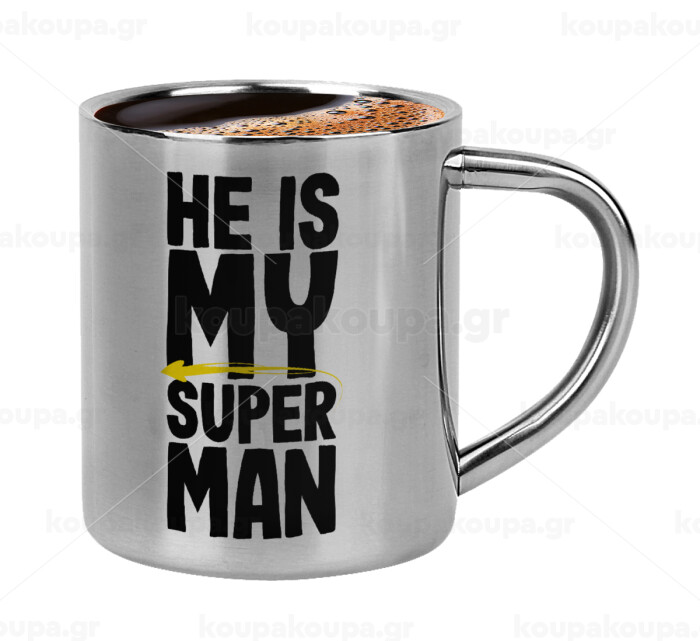 He is my superman, Κουπάκι μεταλλικό διπλού τοιχώματος για espresso (220ml)