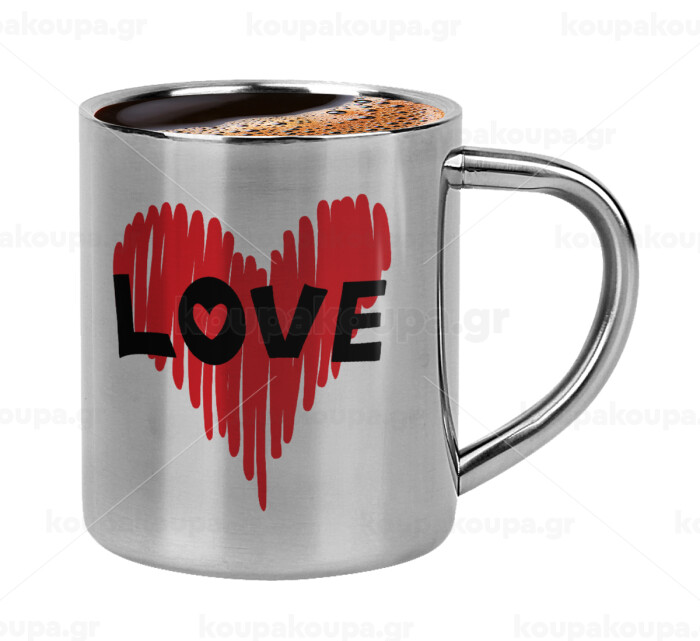 I Love You red heart, Κουπάκι μεταλλικό διπλού τοιχώματος για espresso (220ml)