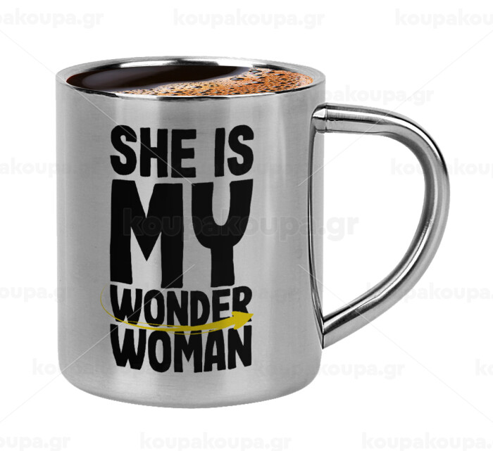 She is my wonder woman, Κουπάκι μεταλλικό διπλού τοιχώματος για espresso (220ml)