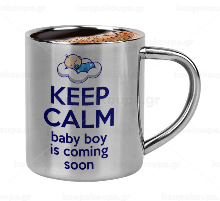 KEEP CALM baby boy is coming soon!!!, Κουπάκι μεταλλικό διπλού τοιχώματος για espresso (220ml)