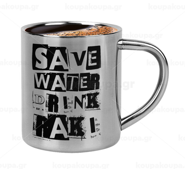 Save Water, Drink RAKI, Κουπάκι μεταλλικό διπλού τοιχώματος για espresso (220ml)