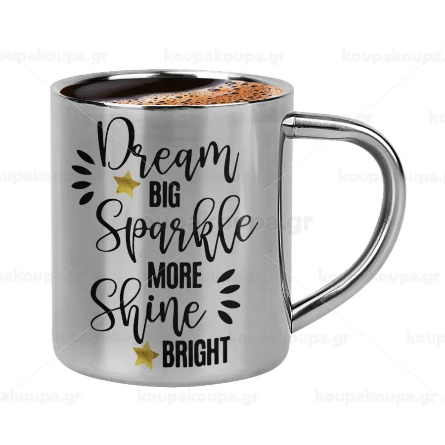 Dream big, Sparkle more, Shine bright, Κουπάκι μεταλλικό διπλού τοιχώματος για espresso (220ml)