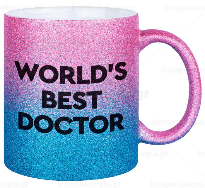World's Best Doctor, Κούπα Χρυσή/Μπλε Glitter, κεραμική, 330ml