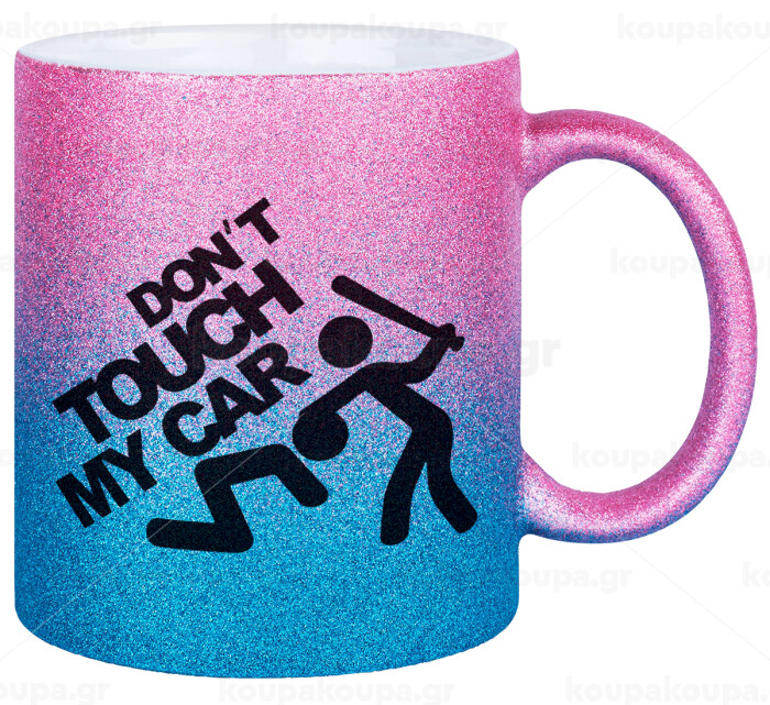 Don't touch my car, Κούπα Χρυσή/Μπλε Glitter, κεραμική, 330ml