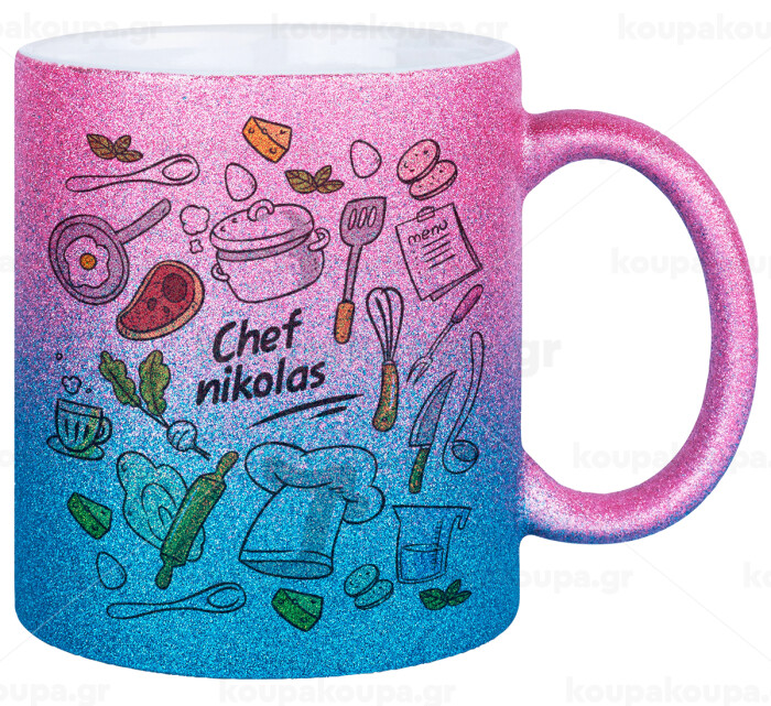 Chef με όνομα, Κούπα Χρυσή/Μπλε Glitter, κεραμική, 330ml