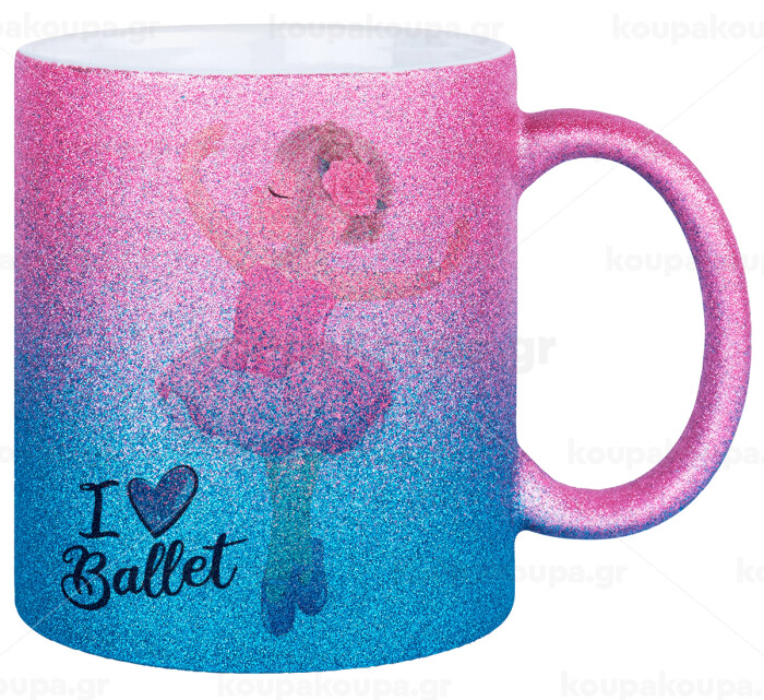 I Love Ballet, Κούπα Χρυσή/Μπλε Glitter, κεραμική, 330ml