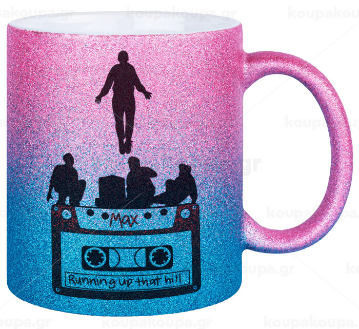 Running up that hill, Stranger Things, Κούπα Χρυσή/Μπλε Glitter, κεραμική, 330ml
