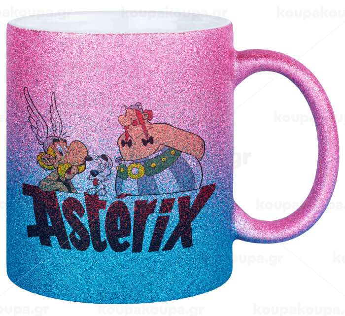 Asterix and Obelix, Κούπα Χρυσή/Μπλε Glitter, κεραμική, 330ml