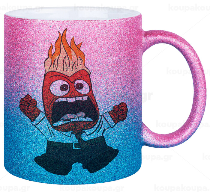 Inside Out θυμός, Κούπα Χρυσή/Μπλε Glitter, κεραμική, 330ml