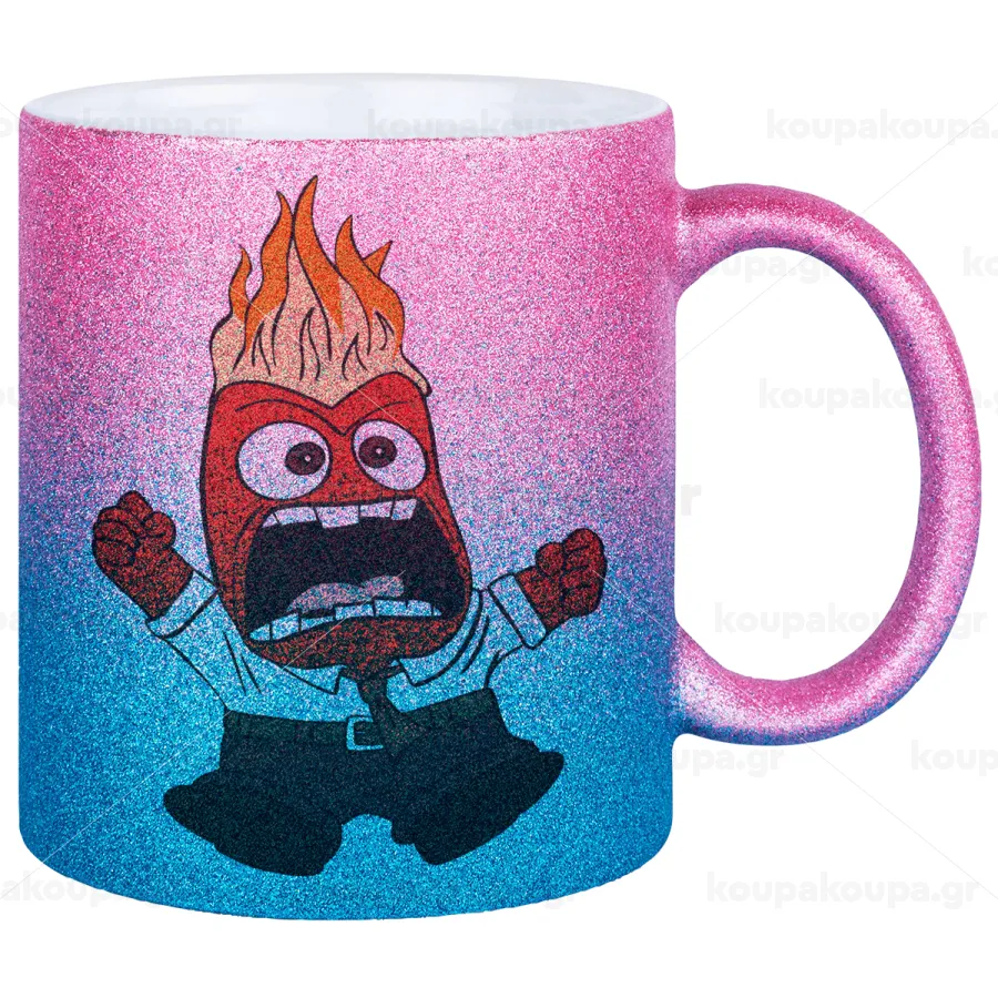 Inside Out θυμός, Κούπα Χρυσή/Μπλε Glitter, κεραμική, 330ml