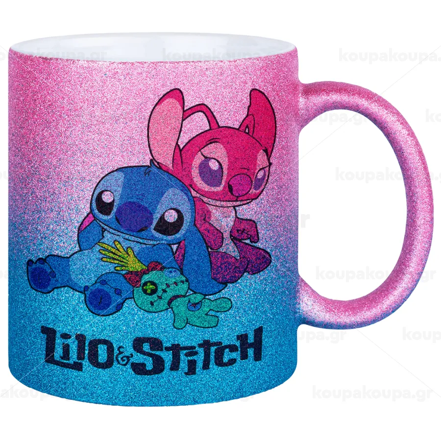 Lilo & Stitch, Κούπα Χρυσή/Μπλε Glitter, κεραμική, 330ml