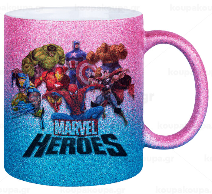 MARVEL heroes, Κούπα Χρυσή/Μπλε Glitter, κεραμική, 330ml