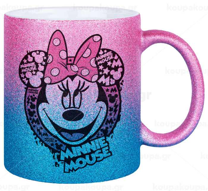 Minnie mouse, Κούπα Χρυσή/Μπλε Glitter, κεραμική, 330ml