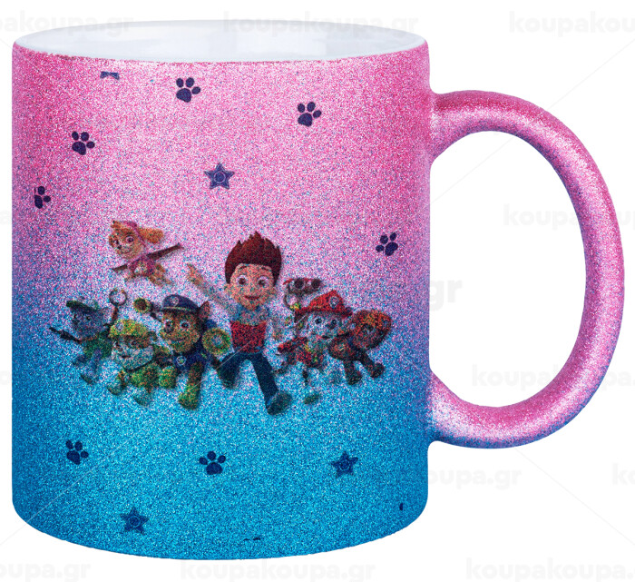 paw patrol, Κούπα Χρυσή/Μπλε Glitter, κεραμική, 330ml