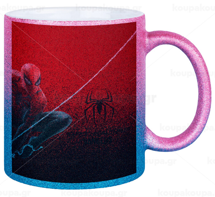 Spiderman, Κούπα Χρυσή/Μπλε Glitter, κεραμική, 330ml
