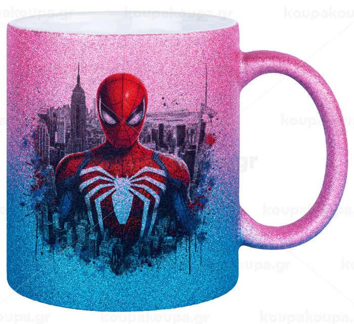Spiderman City, Κούπα Χρυσή/Μπλε Glitter, κεραμική, 330ml