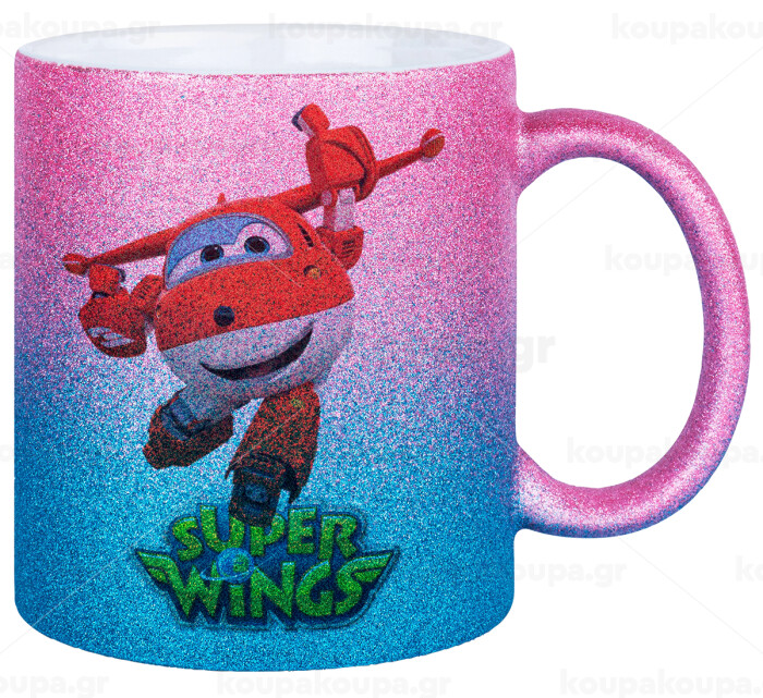 Super Wings, Κούπα Χρυσή/Μπλε Glitter, κεραμική, 330ml