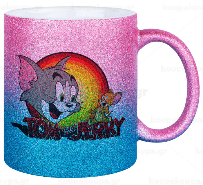 Tom and Jerry, Κούπα Χρυσή/Μπλε Glitter, κεραμική, 330ml