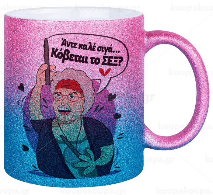 Αντε καλέ, σιγά, κόβεται το σέξ ;, Κούπα Χρυσή/Μπλε Glitter, κεραμική, 330ml